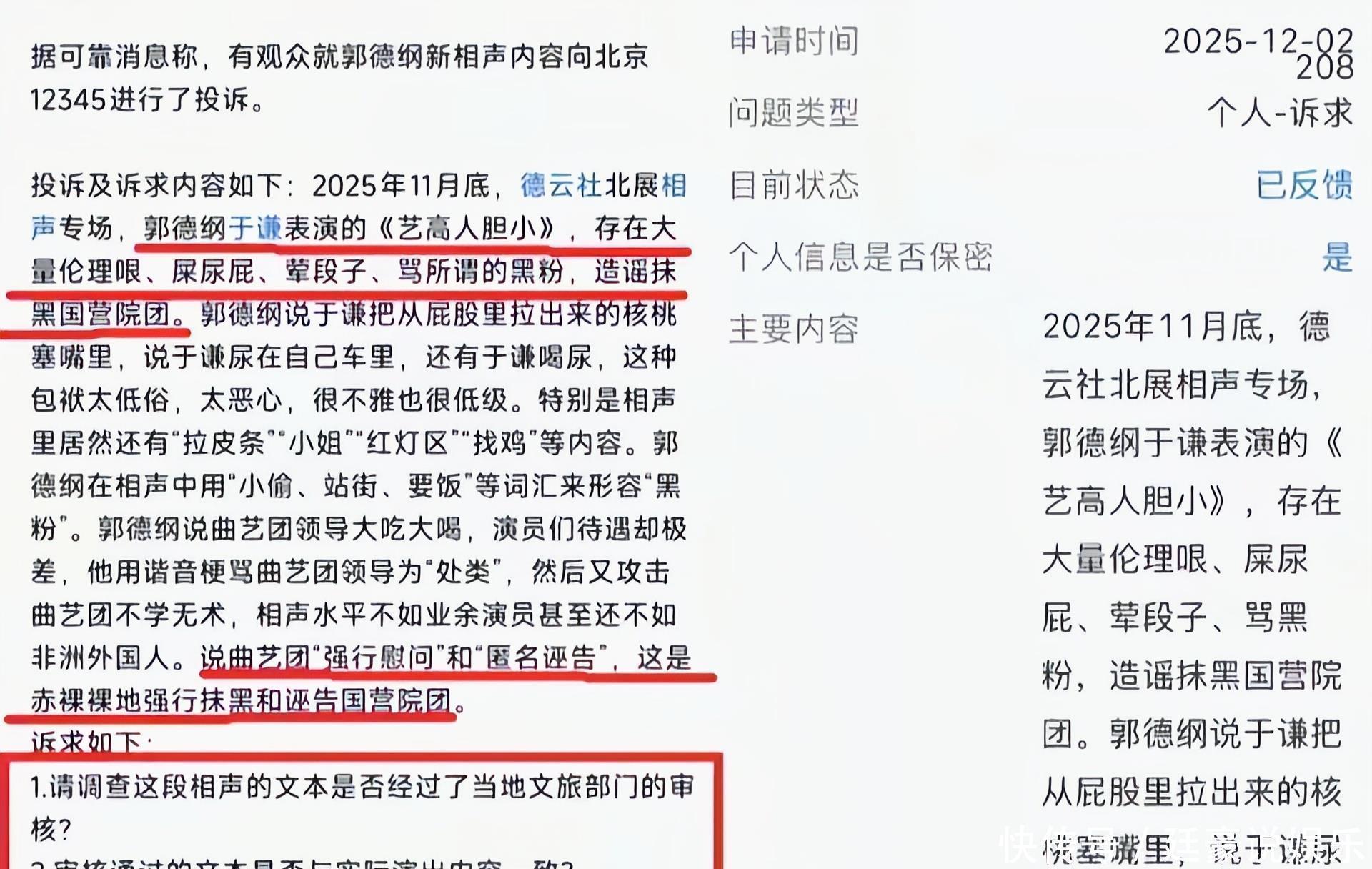 任谁也没有想到,临近年底郭德纲又火爆了,因为相声《艺高人胆大》,被人举报后有关部门约谈,没想到引起了更大的关注。